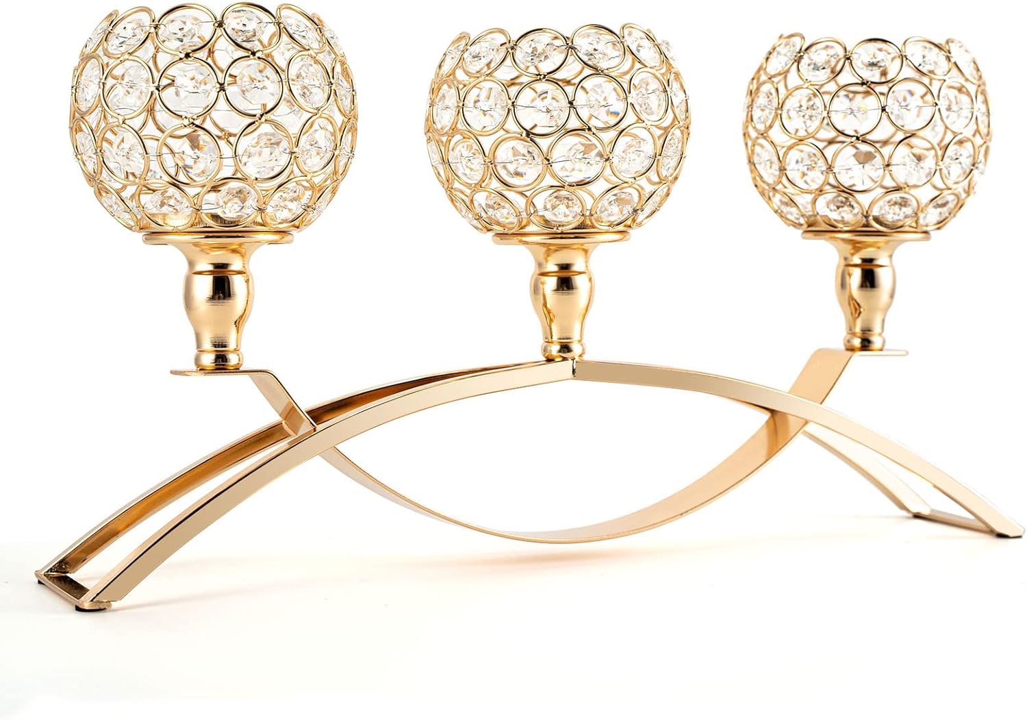 - 【 ELEGANT and UNIQUE DESIGN】➢➣➤ The modern design of this arch candle holder is inspired by an iron bridge: crossover arch shape can ensure the holder solid and stable. Upper 3 individual sparking crystal bowls makes it gorgeous