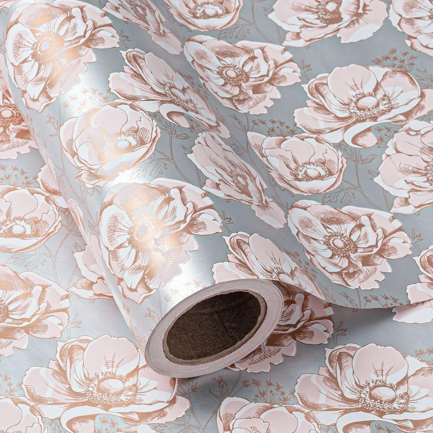 WRAPAHOLIC 30 Inch Jumbo Reversible Floral Wrapping Paper - 30 Inch X 33 Feet - Siver Floral Design for Wedding, Birthday, Mothers Day, Baby Shower, Anniversary, Bridal Shower