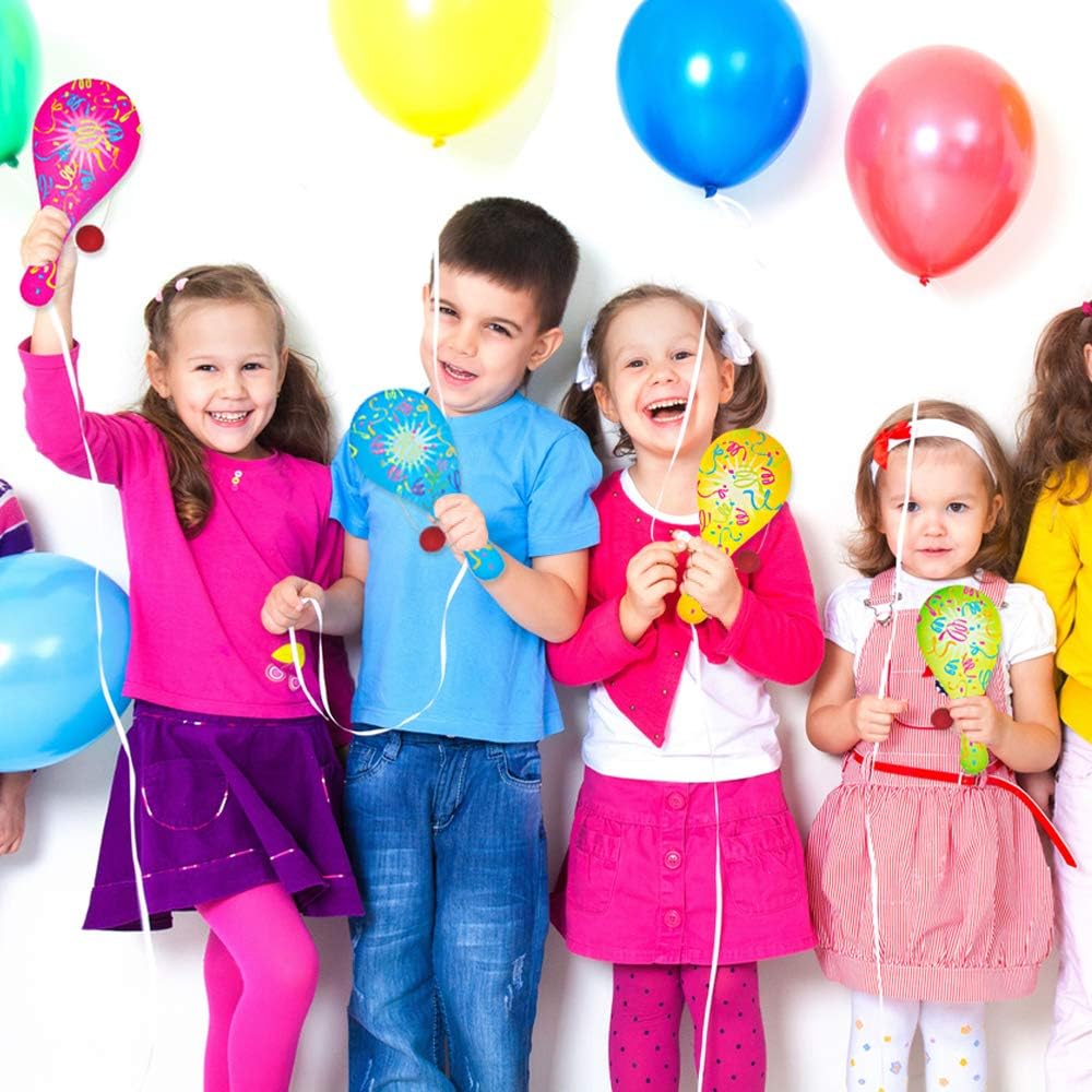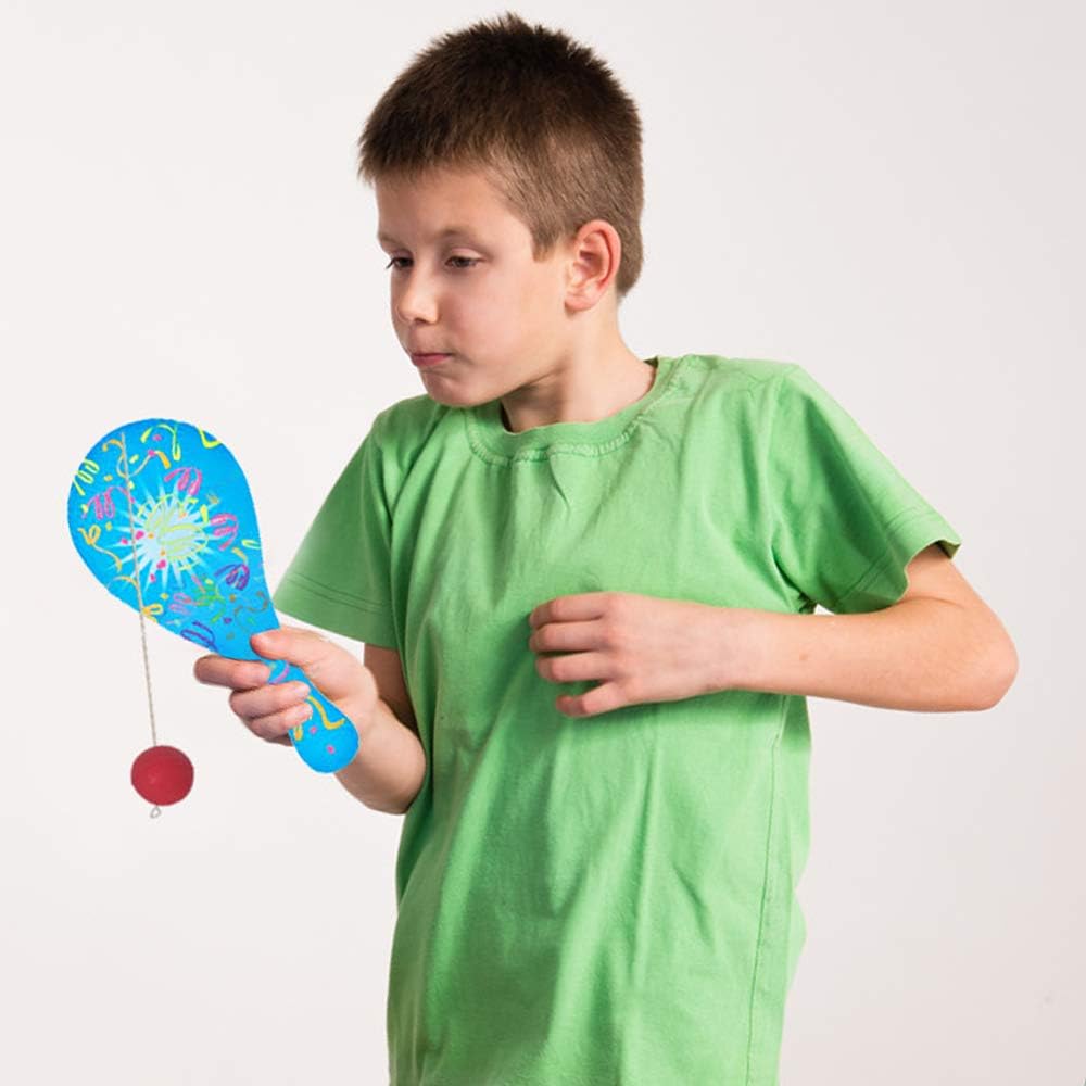 - VIBRANT ASSORTMENT: With confetti designs and a vibrant pop of color, these paddleballs make playtime memorably delightful for kids. Every set comes with an assortment of vibrant neon colors including blue, green, yellow, and pink.