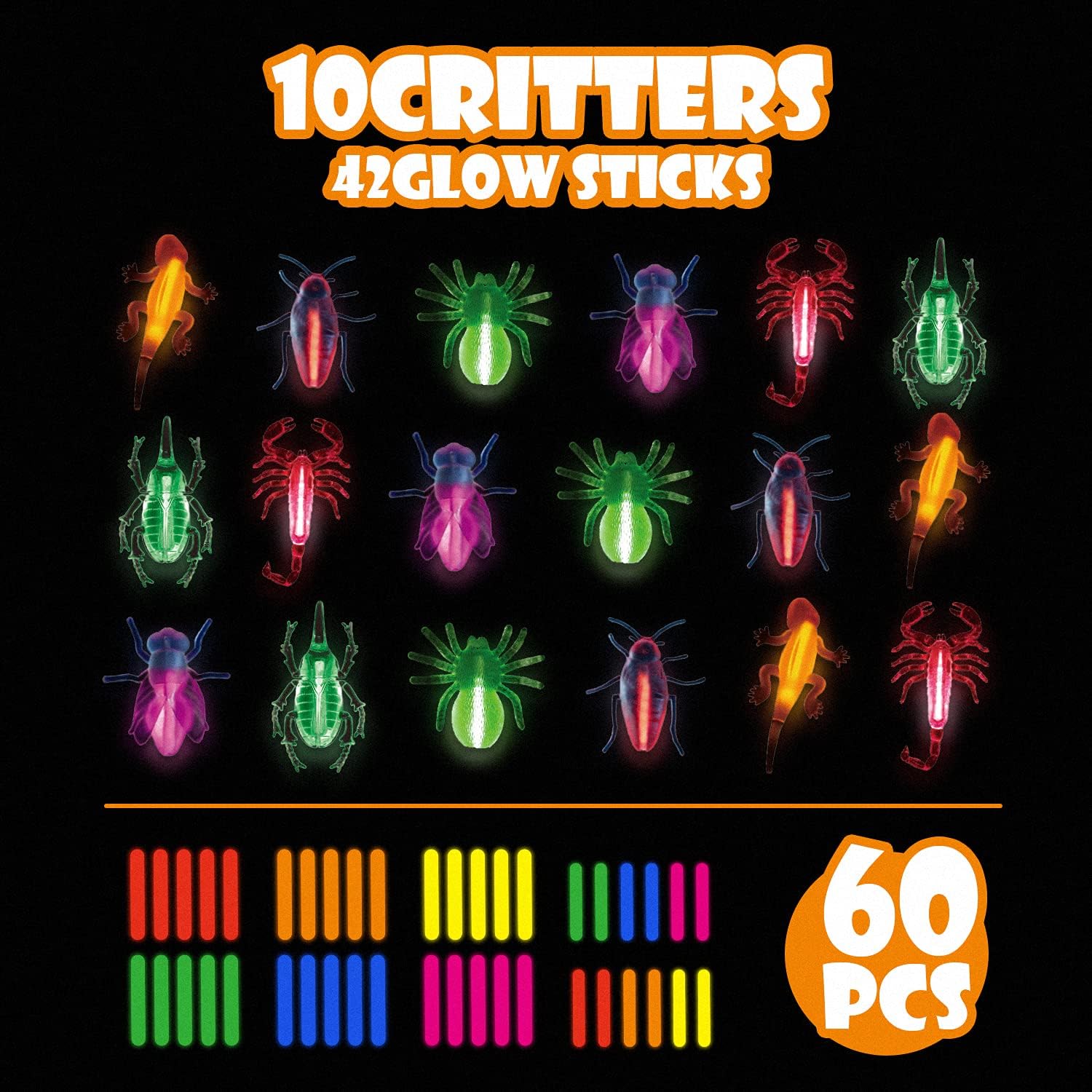 - Glow Halloween Critters Halloween party favors assortments are made with superior plastic,Durable,Reusable. The light up Critters are perfect for Halloween party, trick-or-treating ,backyard hunt,and safe for kids to use as prize box toys, carnival prizes, goodie bag fillers.Good for birthday party gift bags too. It also could be used for pool parties,or made for a spooky Halloween bath for kids as it's waterproof.