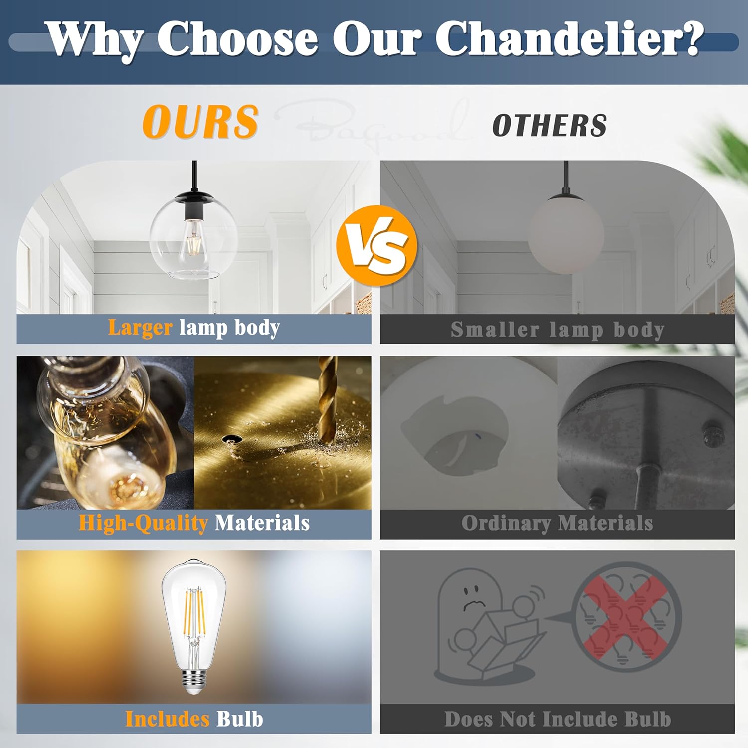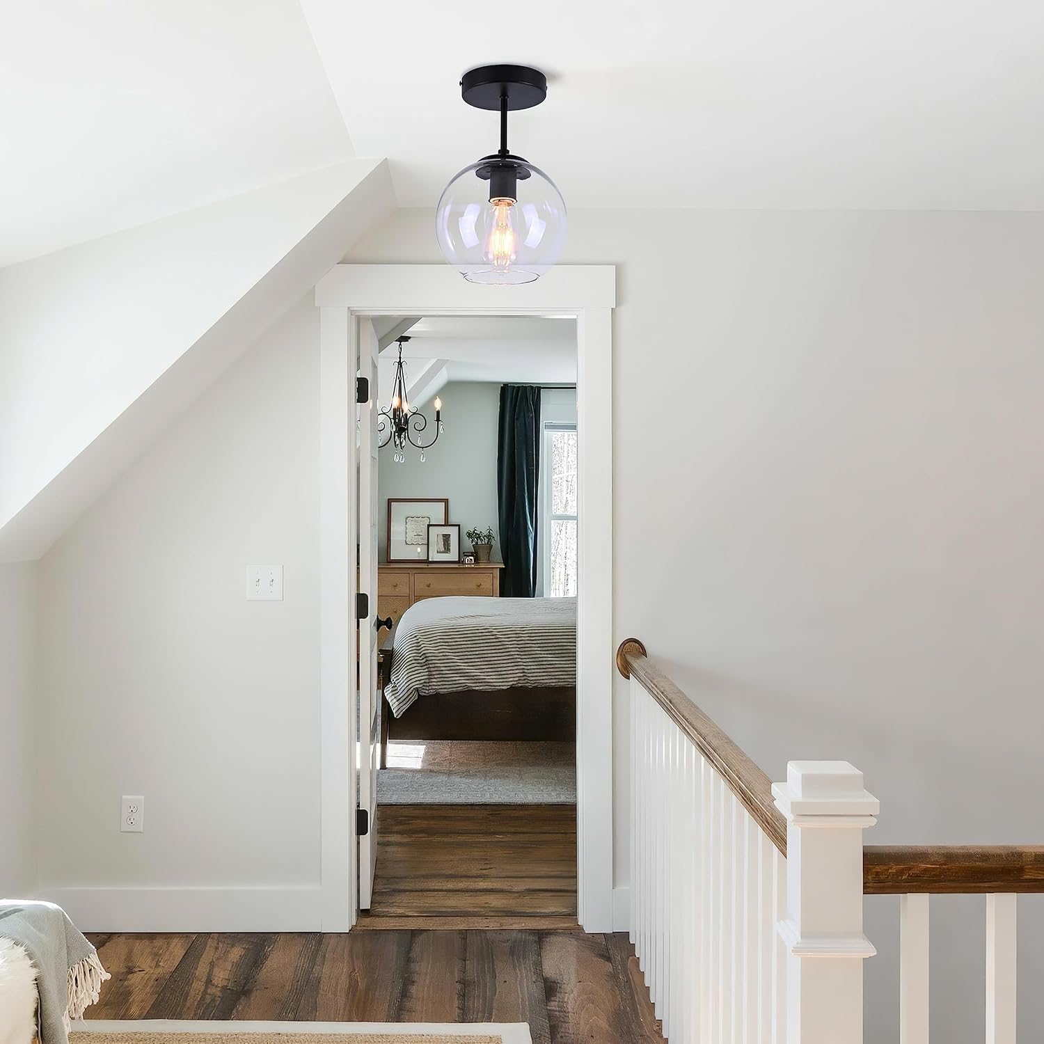 - [Bulbs Included & Dimmable]:The clear glass globe light fixture designed with 1 x E26 socket with a max power of 60W. When you buy other dimmable bulbs and combine it with a wall dimmer(not included) it can be fully dimmable. so you can use this fixture with confidence