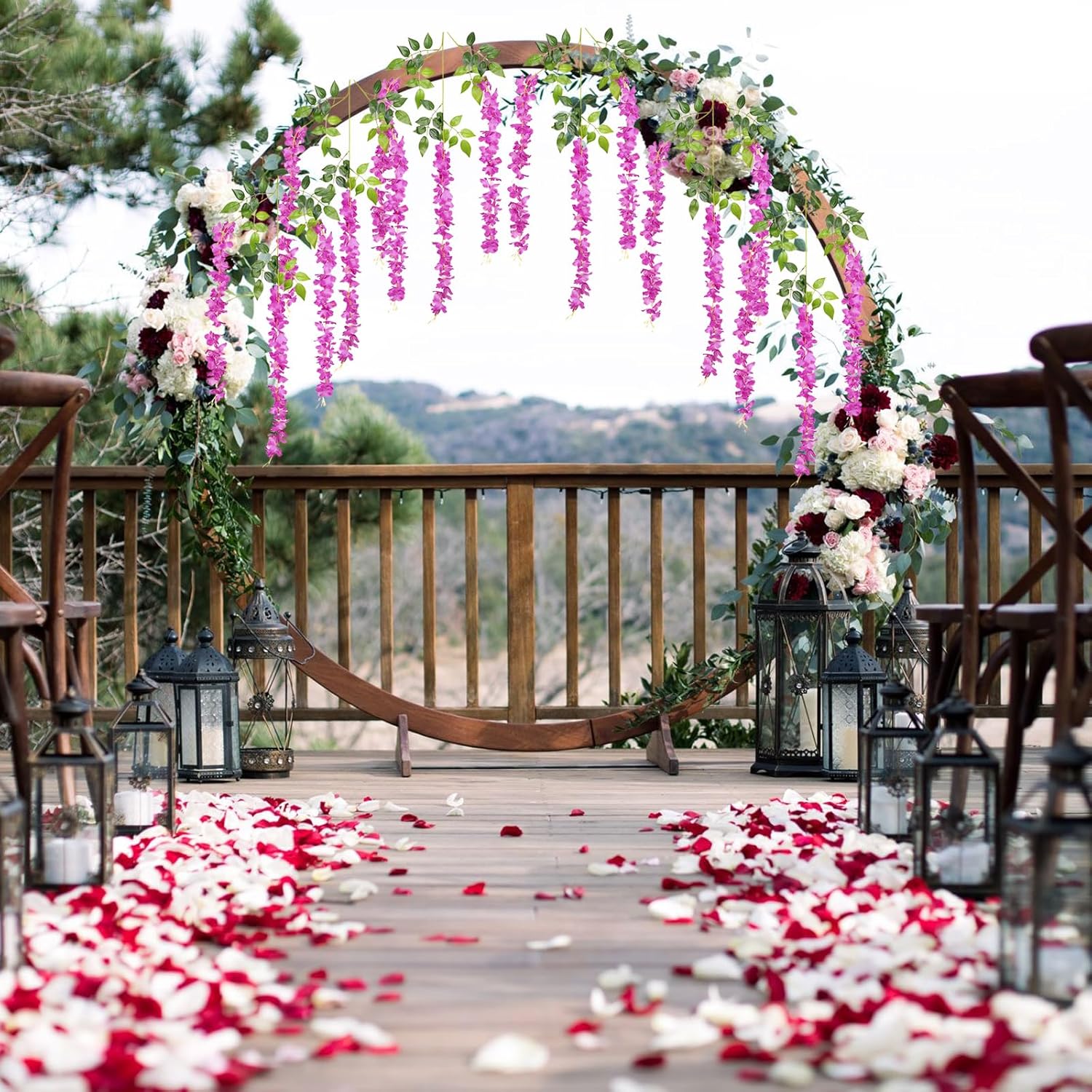 - 【Package Included】24 pieces of silk purple red wisteria hanging flowers, each length 45.27 inches. Every artificial wisteria garland has 3 branches and 6 leaves, the wisteria flower petal length is 23.62 inches. (Note: There may be some color differences in different lights)