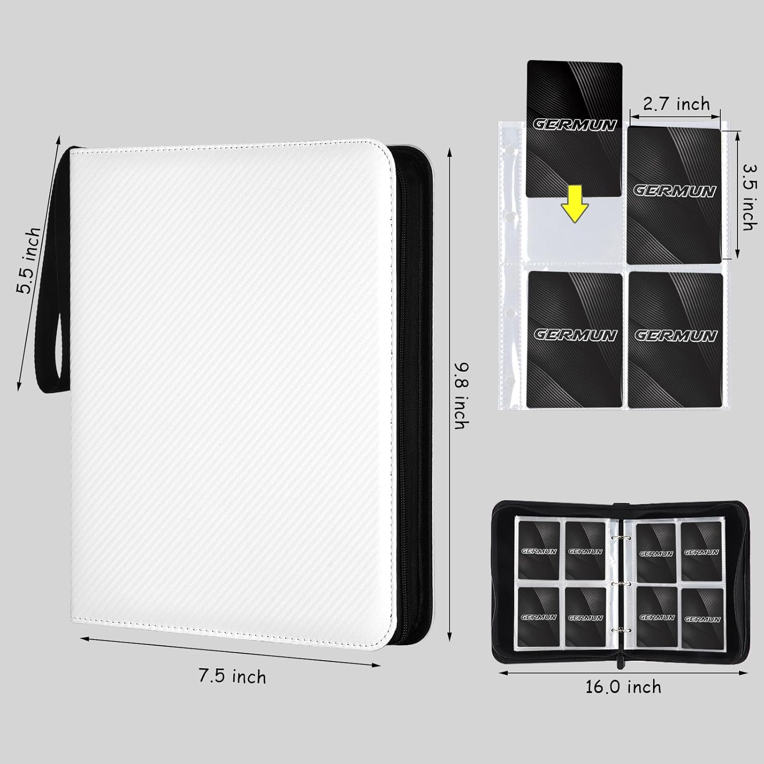 4 Pocket Card Binder, Premium Zip Trading Card Binder, 400 Double Sided Pocket PU Card Collection Binder, Collector Card Album, Card Folder for MTG, TCG, Sports Cards, Game Cards (White)