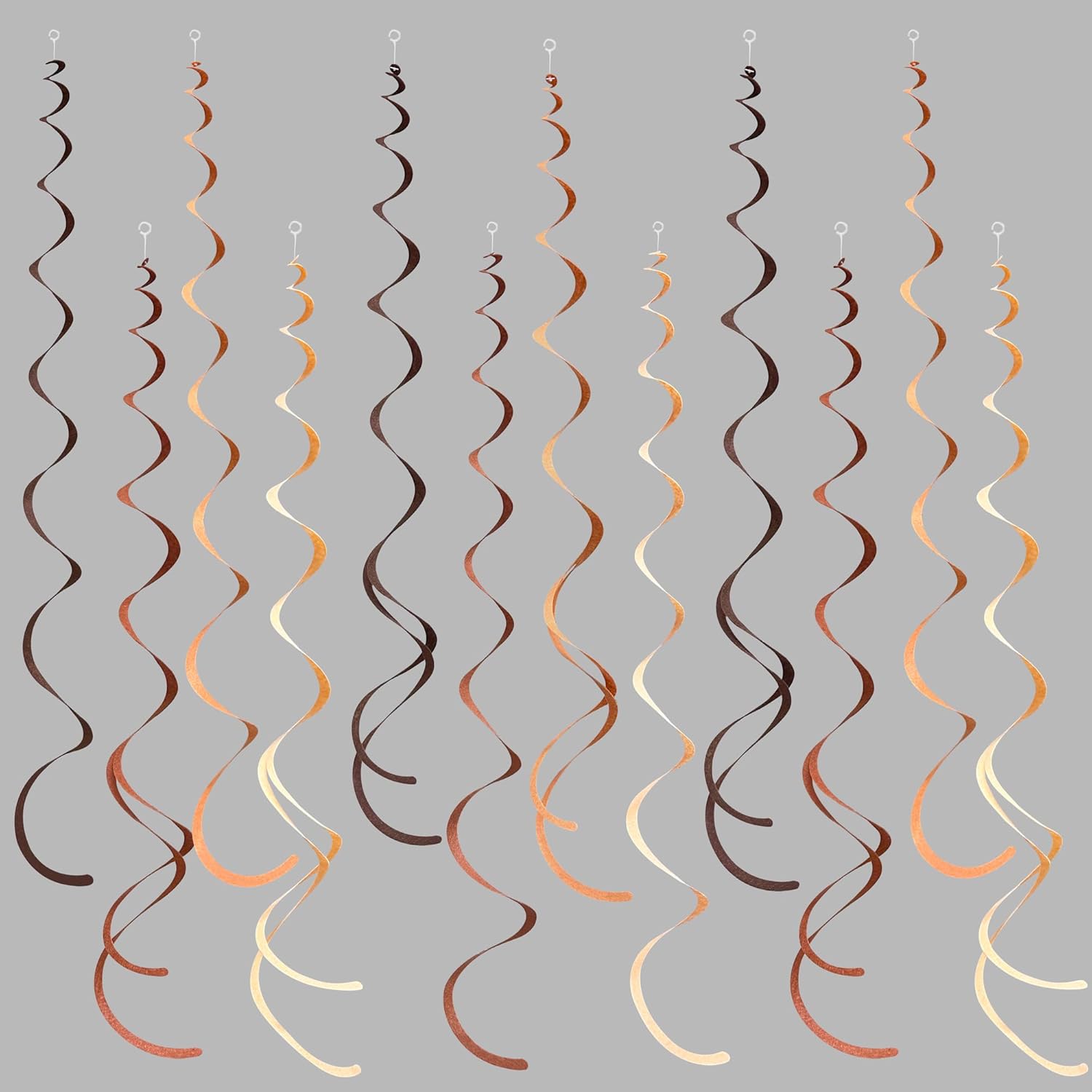 - 🤎Package Contains - 36 packs of brown coffee ombre color swirl party streamer,Each swirl can extends to approximately about 2.62 feet long,Meeting daily general needs.Comes with 40 plastic hooks for hanging.