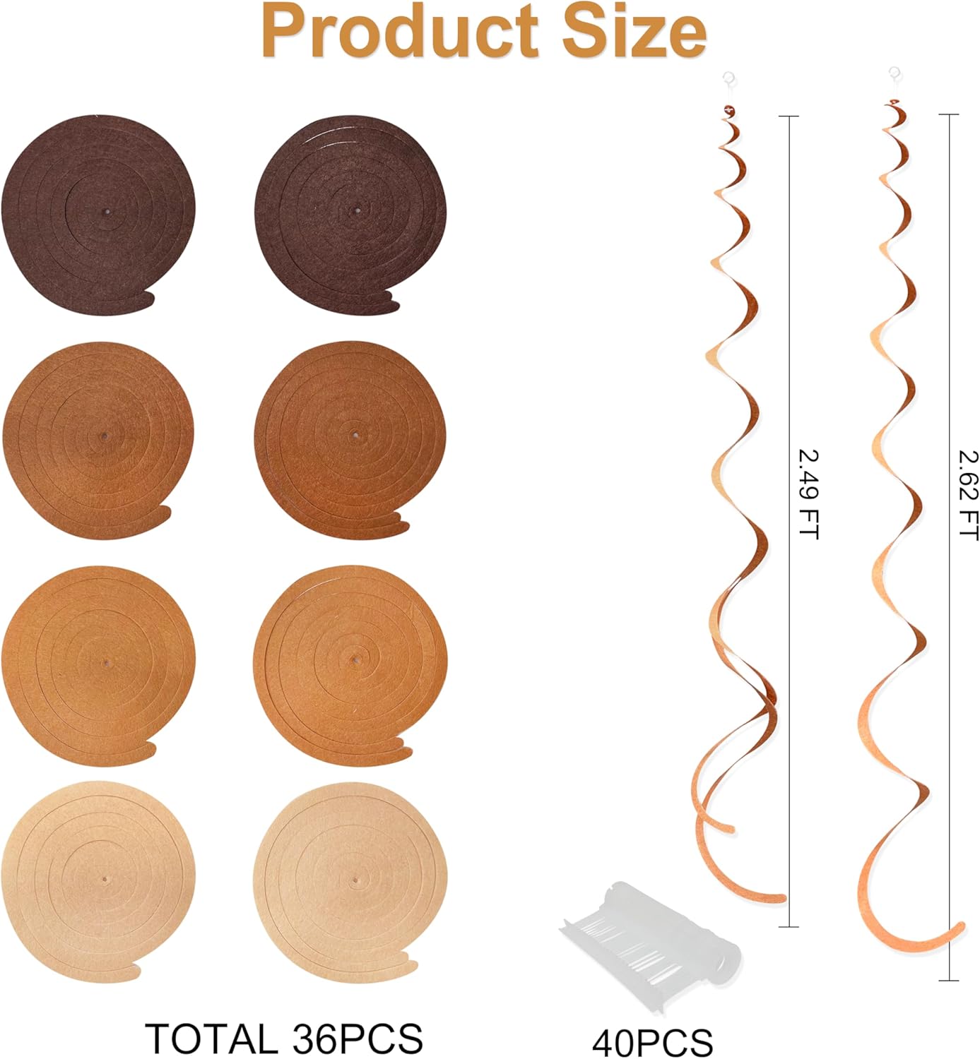 - 🤎High Quality - Our felt swirl hanging decorations kit are made of high-quality felt in gradient brown color(Coffee.Brown.Khaki.Beige),Soft texture and safer than PVC swirls.durable and reusable.and the color is more brilliant than general PVC whirls.