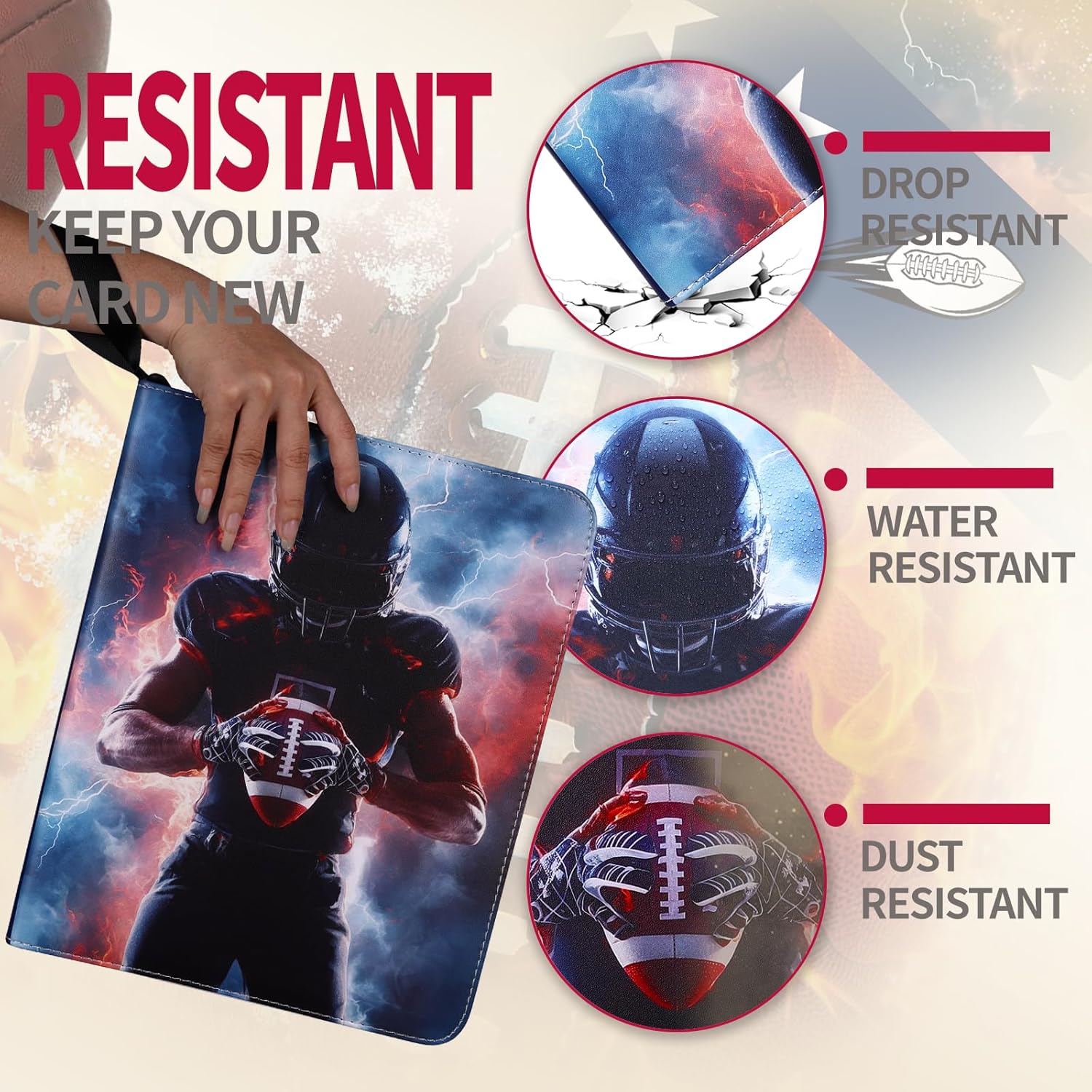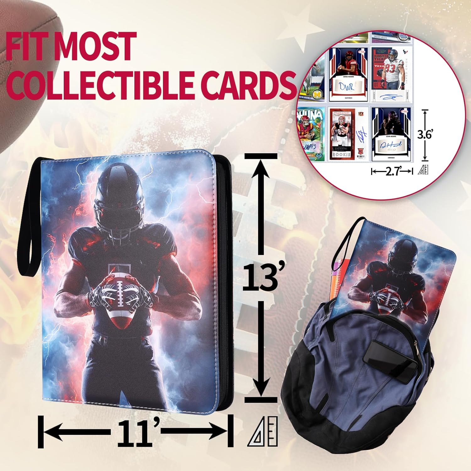 - π A Collectors Dream Binder! This football card binder has a Stylish, Classic and Elaborate design, which will be an outstanding item that any football enthusiast would be proud to display. Fit for Birthdays, Parties, Christmas, Back-to-School, Celebrations, etc