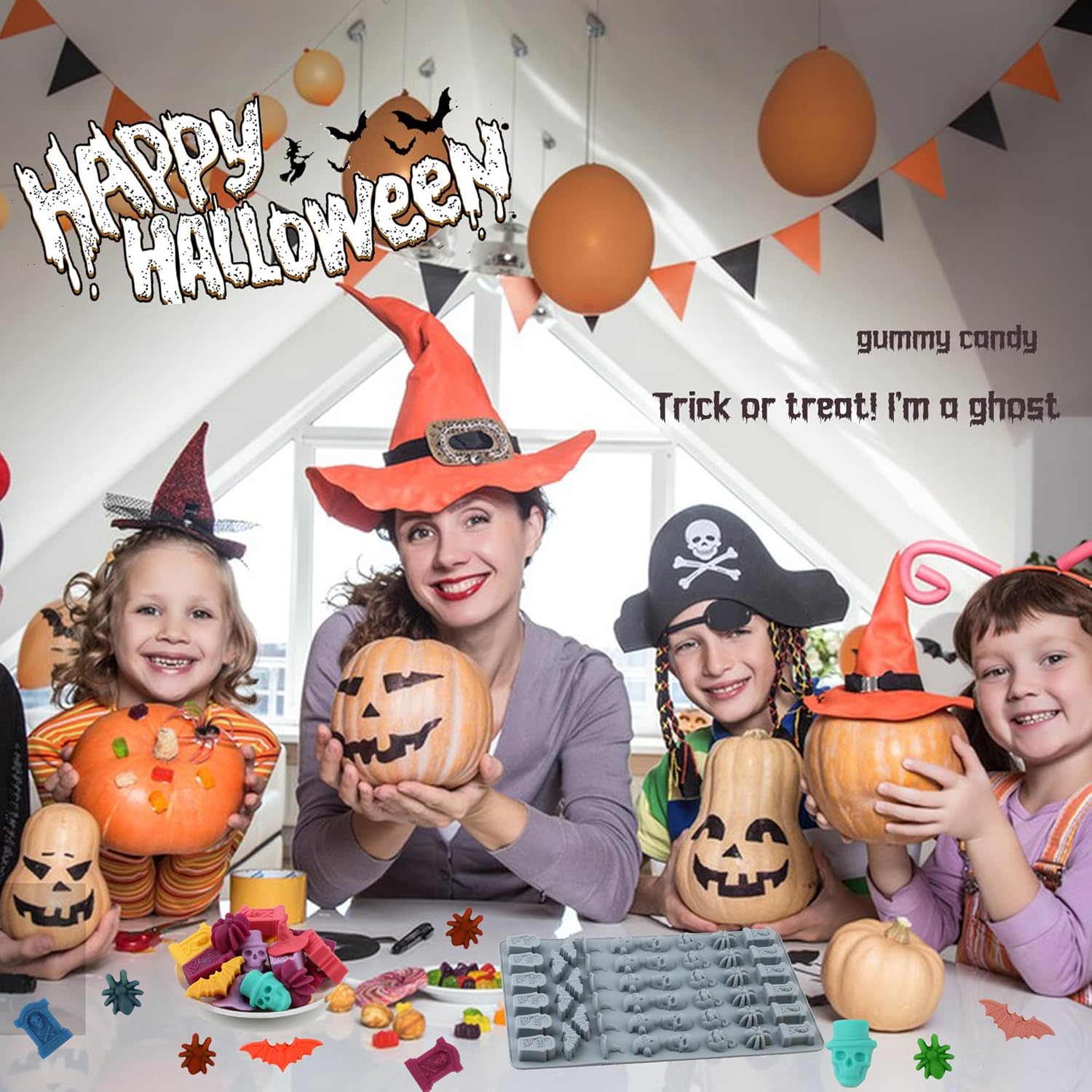 - 【Halloween Design】- The Heritage Gummy Mold Pan Is Designed With A Pumpkin Ghost Wizard Hat Bat Spider Tombstone Skull Halloween, Adding An Elegant Touch To Your Baked Goods. SIlicone Mold Non Stick Ensures Your Candy Come Out With The Halloween Day Design Intact, Making Them Look As Good As They Taste.