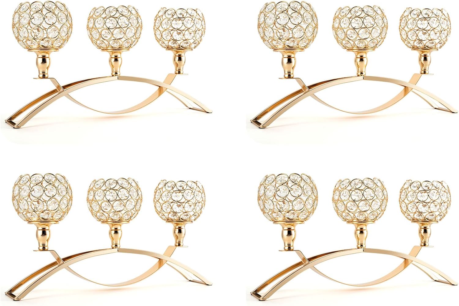 - 【 ELEGANT and UNIQUE DESIGN】➢➣➤ The modern design of this arch candle holder is inspired by an iron bridge: crossover arch shape can ensure the holder solid and stable. Upper 3 individual sparking crystal bowls makes it gorgeous