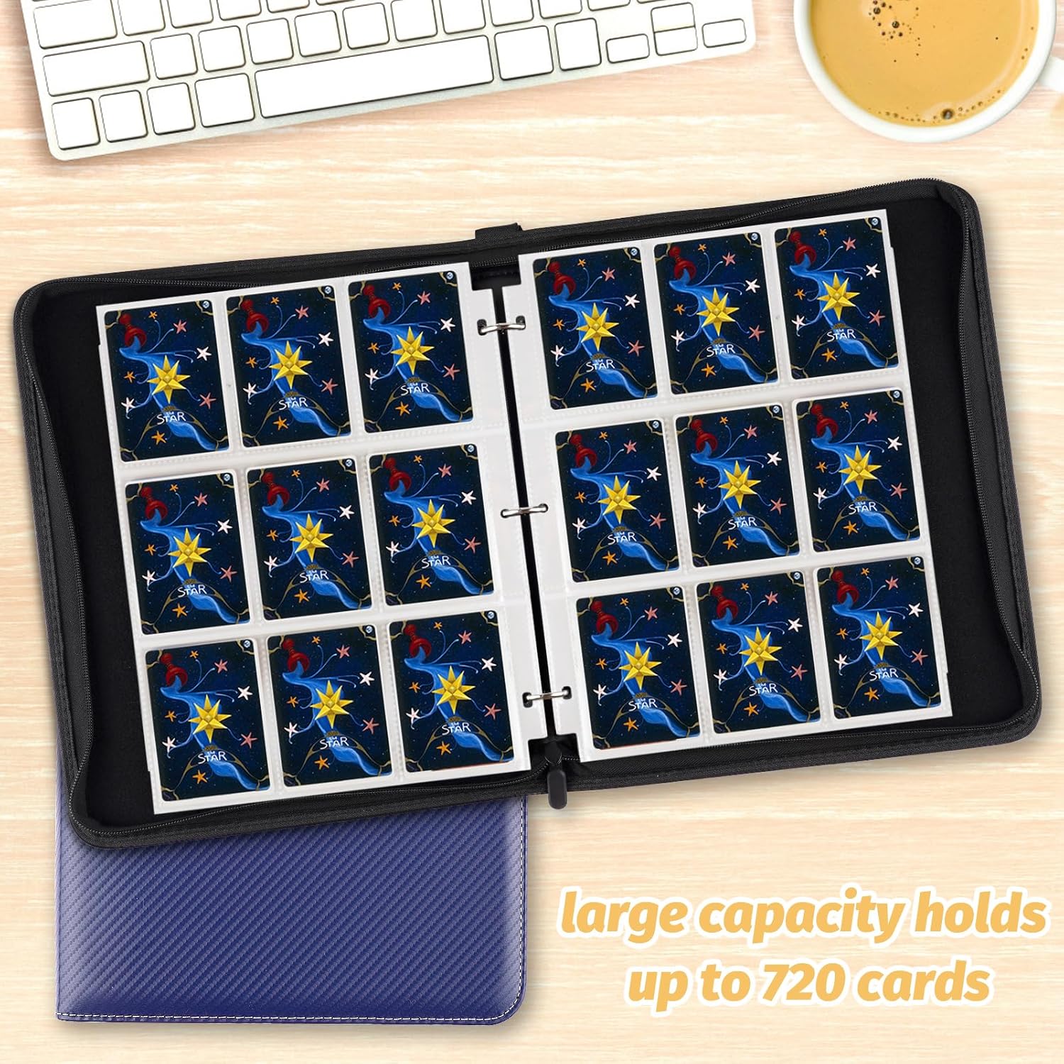 Trading Card Binder, Premium 9 Pocket Card Binder, 720 Double Sided Pocket PU Collection Binder, Collector Album, Card Holder for MTG, TCG, Sports Cards (Black)