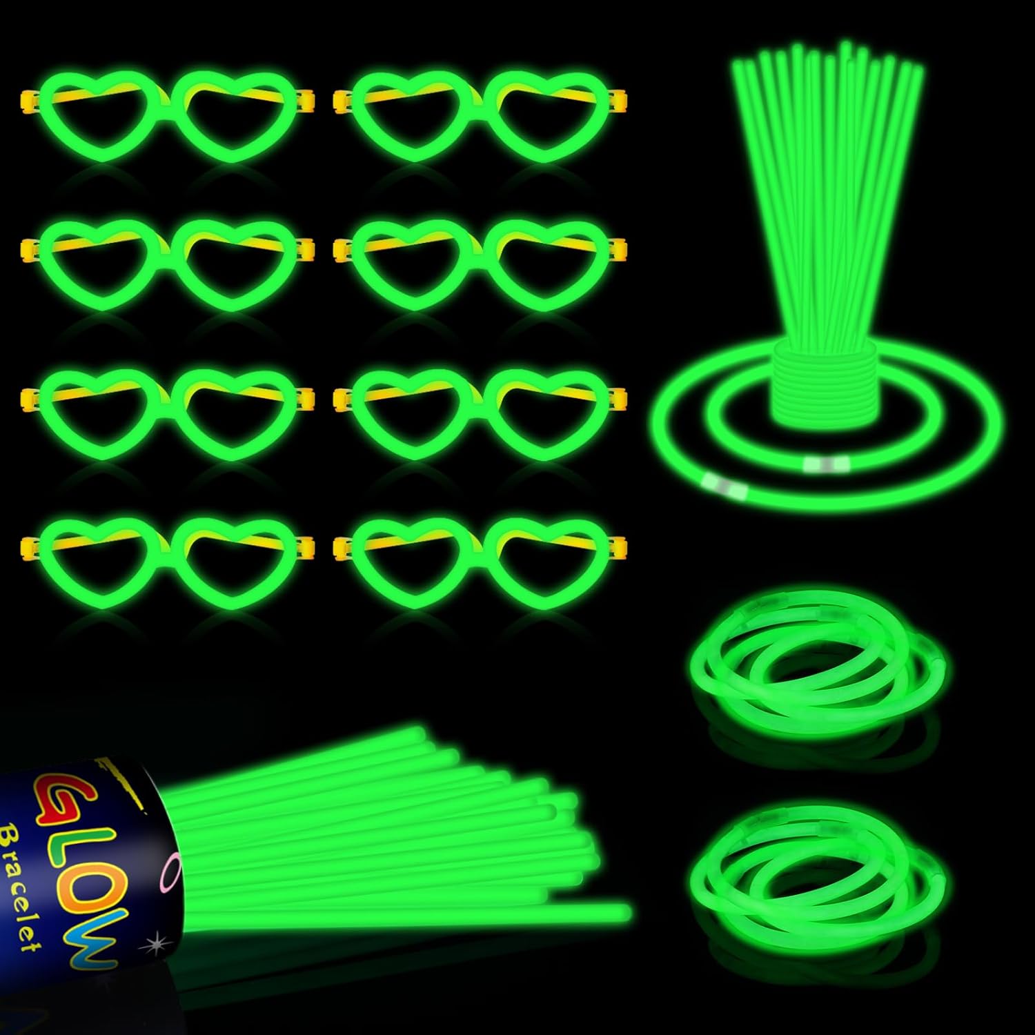 60 Pack 8” Green Glow Sticks Bulk Bright Glow Sticks with 60 Connectors 20 Heart Glasses Glow In The Dark Party Supplies Neon Party Decorations Glow Bracelet Glasses for Carnival (Green)