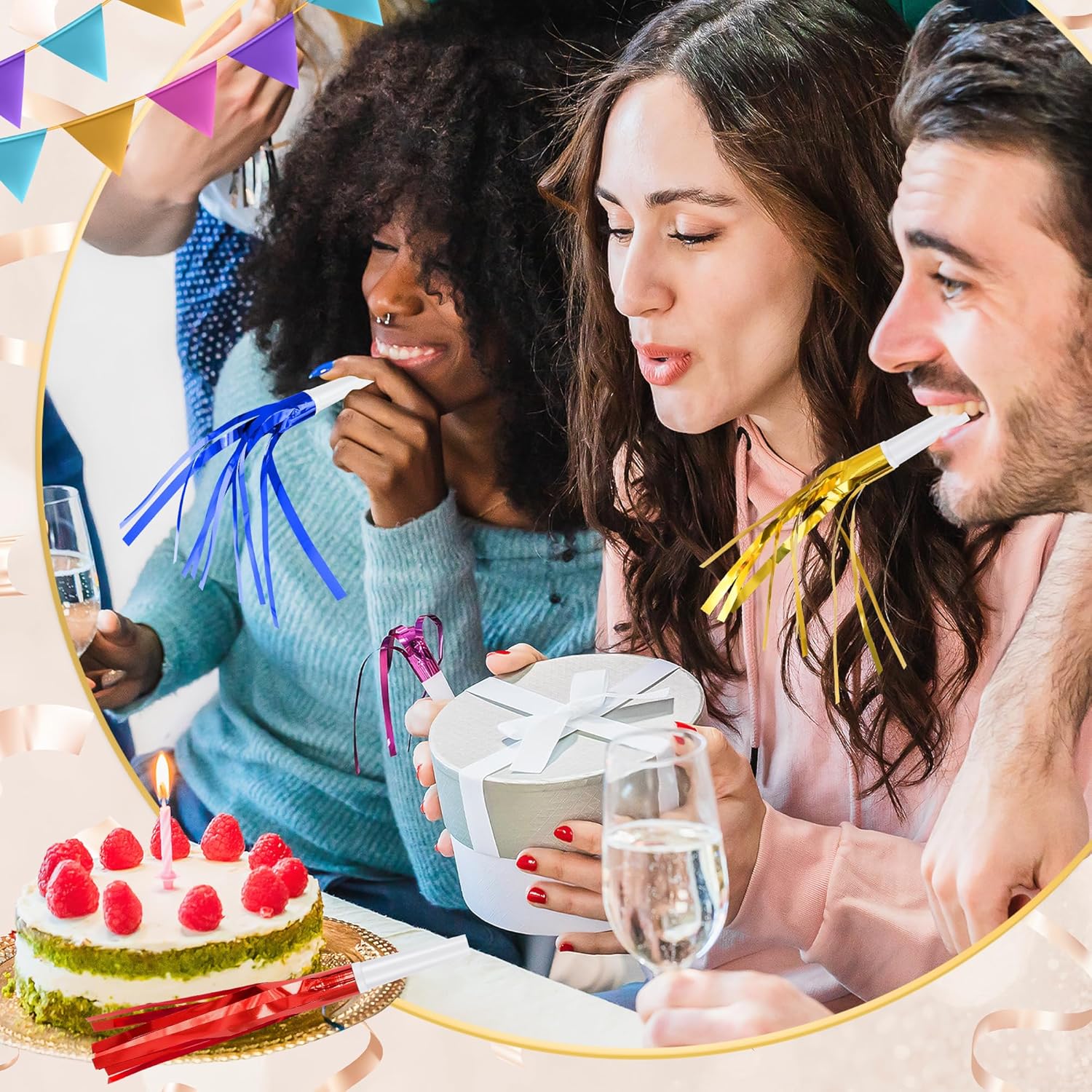 12 Pcs Glitter Noise Makers Metallic Fringed Party Blower for Adults Birthday Graduation New Years Party Favors Supplies (Colorful)