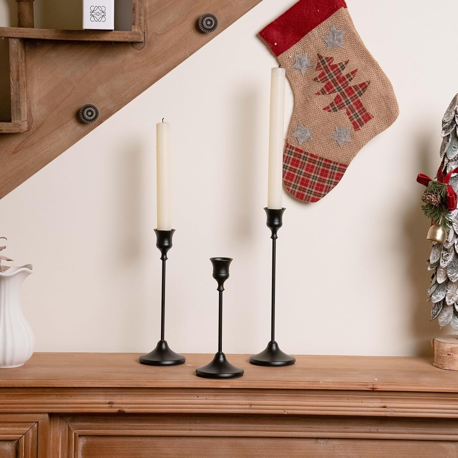 - [Wide Applications]: The black taper candle holders set is suitable for candlesticks and taper canldes with O.D 0.78inch(20mm). They can be placed in bedroom, living room, bar, dining tables,side endtable, or coffee tables to create a family atmosphere for romantic weddings, holiday decorations, ceremonies, and anniversaries.se it as a centerpiece on your table or fireplace decorations