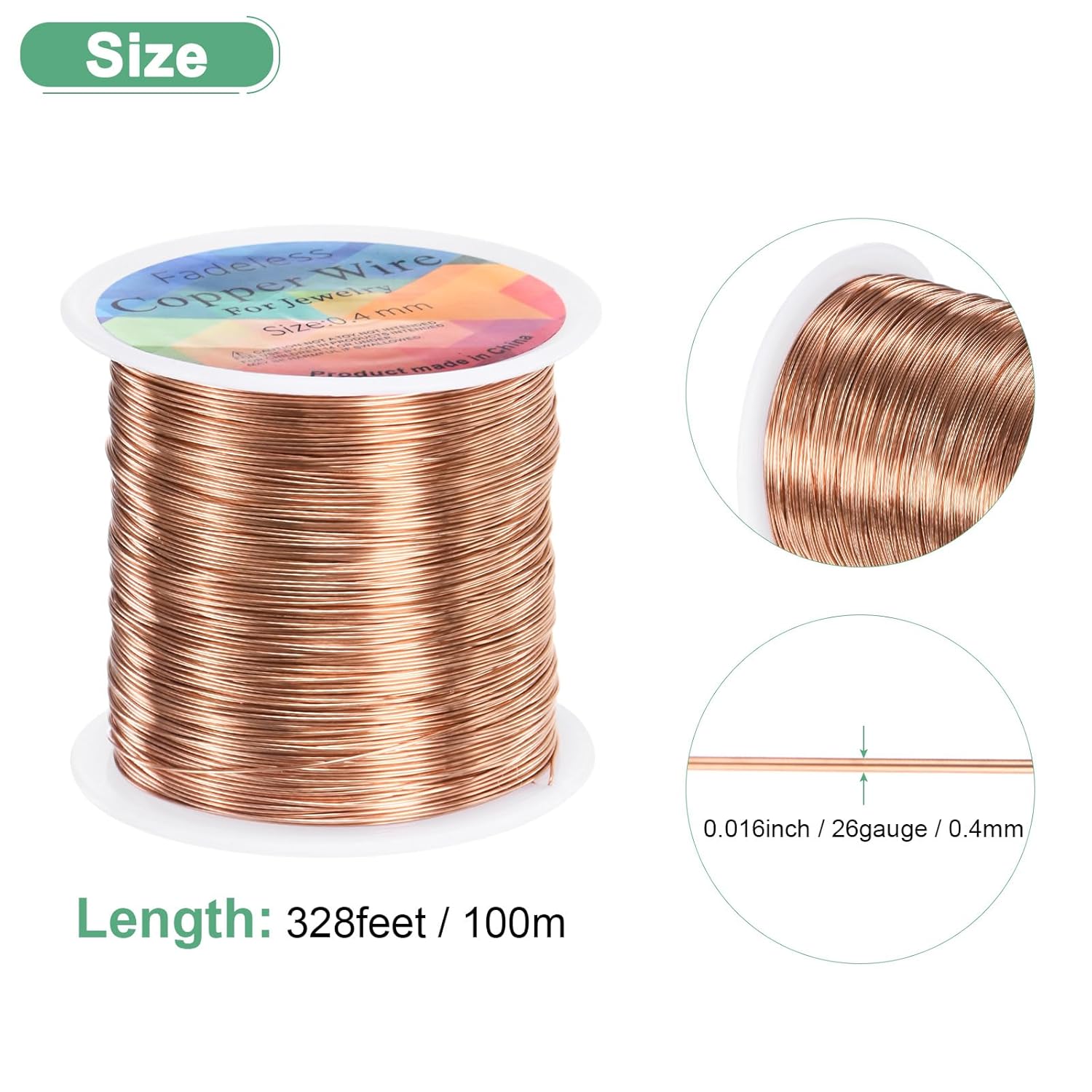 - [Size & Package] - Wire Diameter: 0.4 mm/ 26 Gauge/ 0.016 inch; Each Roll Length: 100 M/ 328 Feet; Package Includes: 1 Roll x Craft Copper Wire