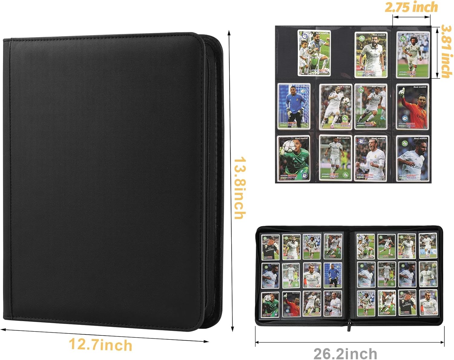 - 【Perfect Build】 Holds 720 trading cards with 30 pages 12-pocket bound to the spine, providing plenty of space to get all your cards organized.binder built without rings. No more worrying about rings damaging your cards, along with a zippered closure for extra protection.Side Loading designed to prevent cards from easily falling out.