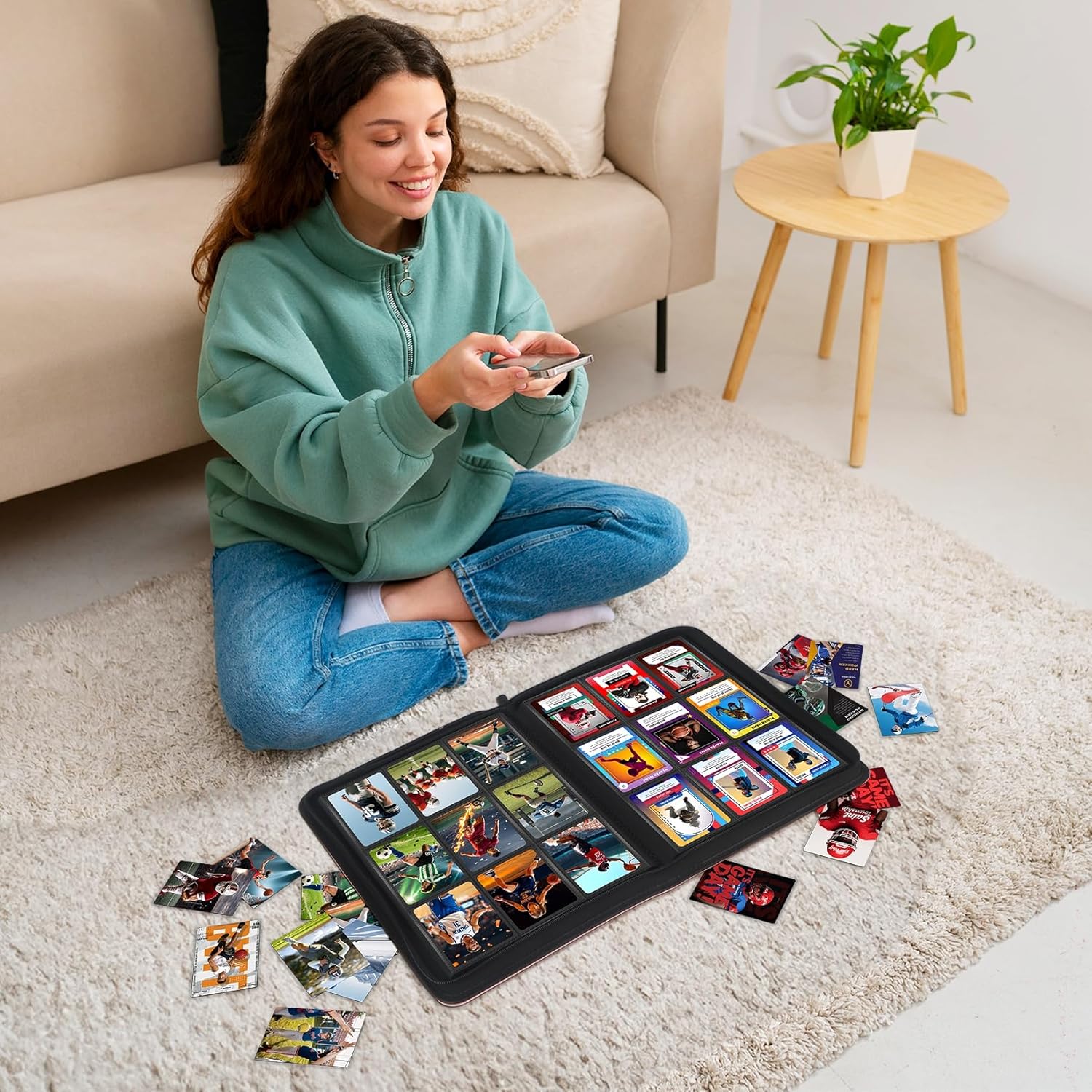 - Ringless & Zippered Design: Our large-capacity card folder features a ringless structure and a smooth, sturdy zipper to eliminate page misalignment and accidental scratches. The durable, easy-glide zipper with a widened closure offers full-edge protection—keeping your cards securely enclosed and shielded from dust, spills, and drops, whether at home or on the go.