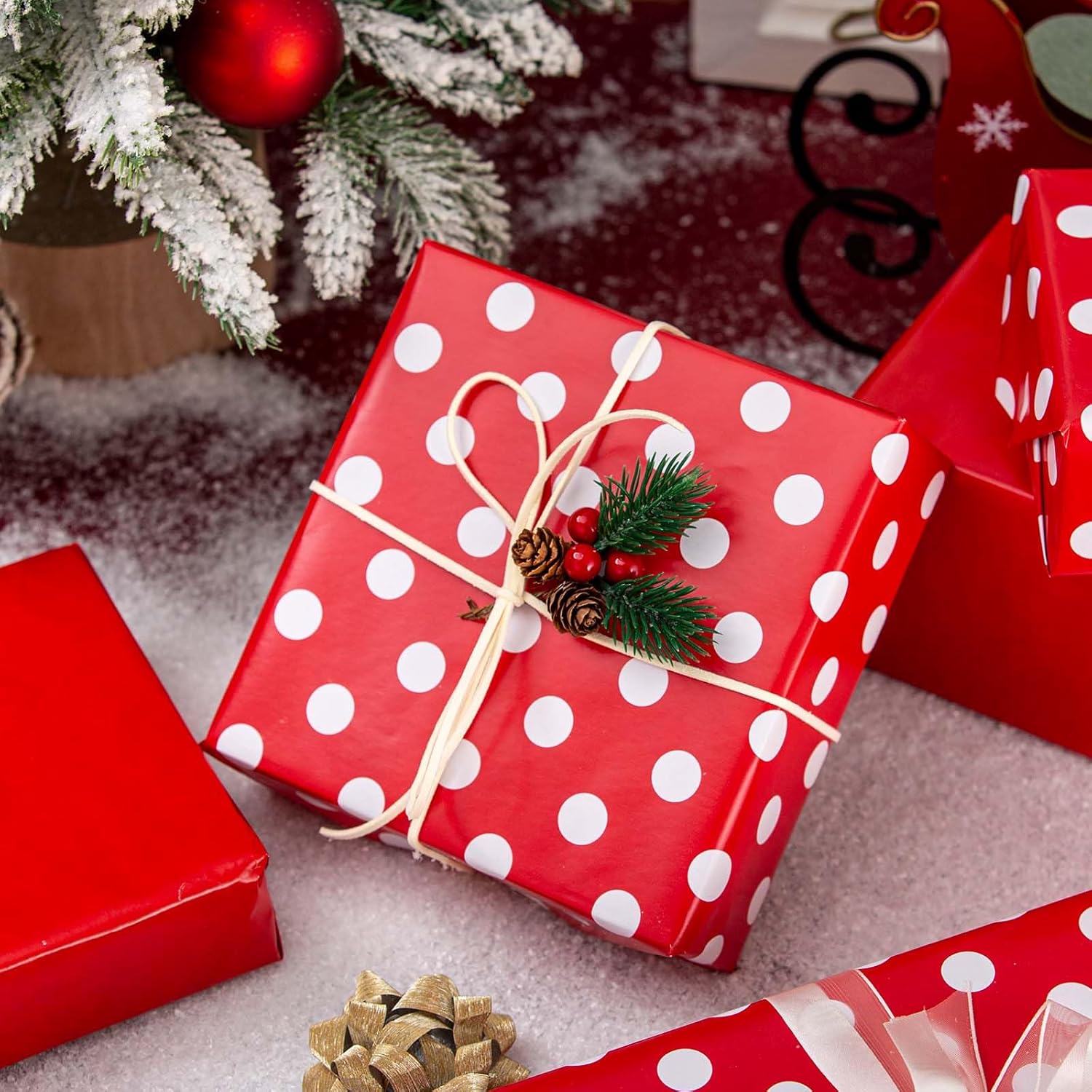 - Double-Sided Wrapping Paper: One side has red and white polka dots, and the other is solid pink, making your gift wrap both fun and elegant