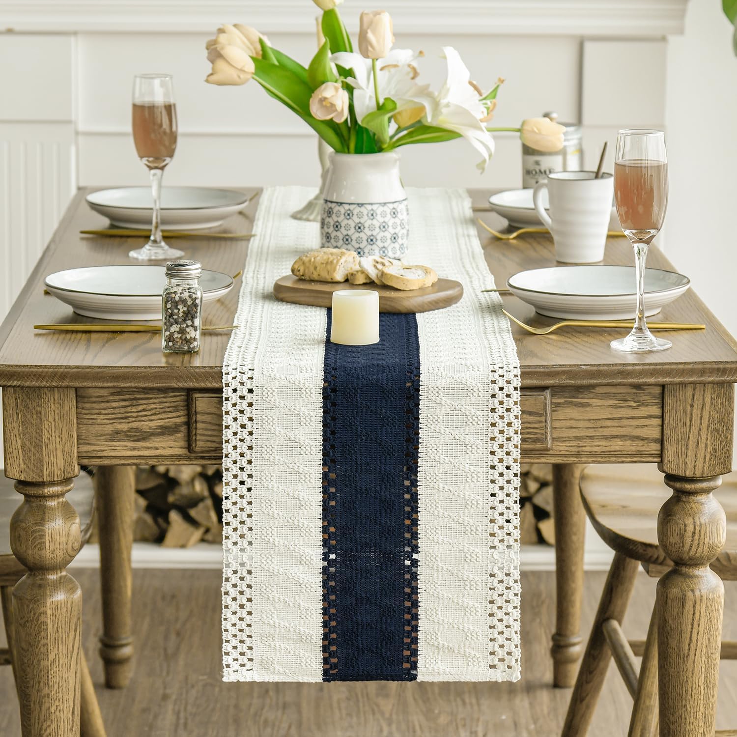 Artoid Mode Dark Blue Farmhouse Rustic Table Runner, Seasonal Holiday Hollow Kitchen Dining Table Decoration for Home Party Decor 12x108 Inch