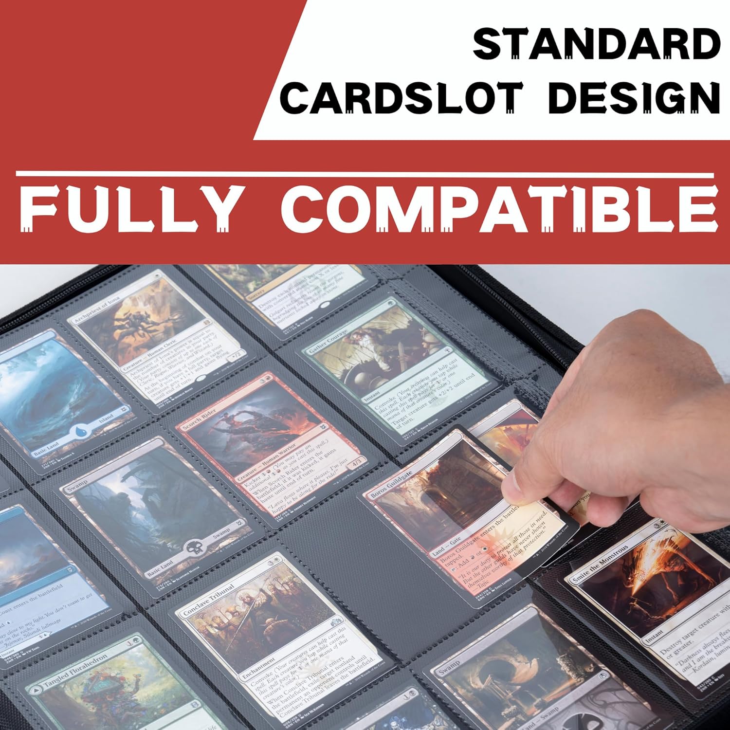 - ๐ฆ๐๐ฎ๐ป๐ฑ๐ฎ๐ฟ๐ฑ ๐๐ถ๐๐ฒ: Designed for standard-sized collector sleeves and binders, this trading card holder allows for easy organization and presentation of your collection's best pieces. No more struggling to fit oversized or undersized cards into holders that just aren't built for them!