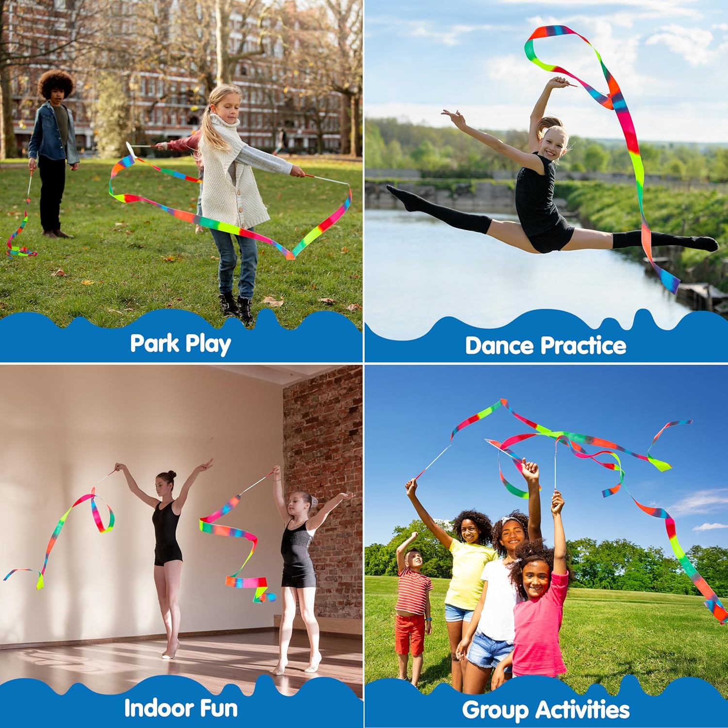 - DAZZLE ON THE DANCE FLOOR! These wands are the perfect accessory for aspiring artists and athletes. Their bright colors and graceful flow make them ideal for creative dance performances and for practicing elegant routines in rhythmic gymnastics, helping to create a stunning visual spectacle with every movement.